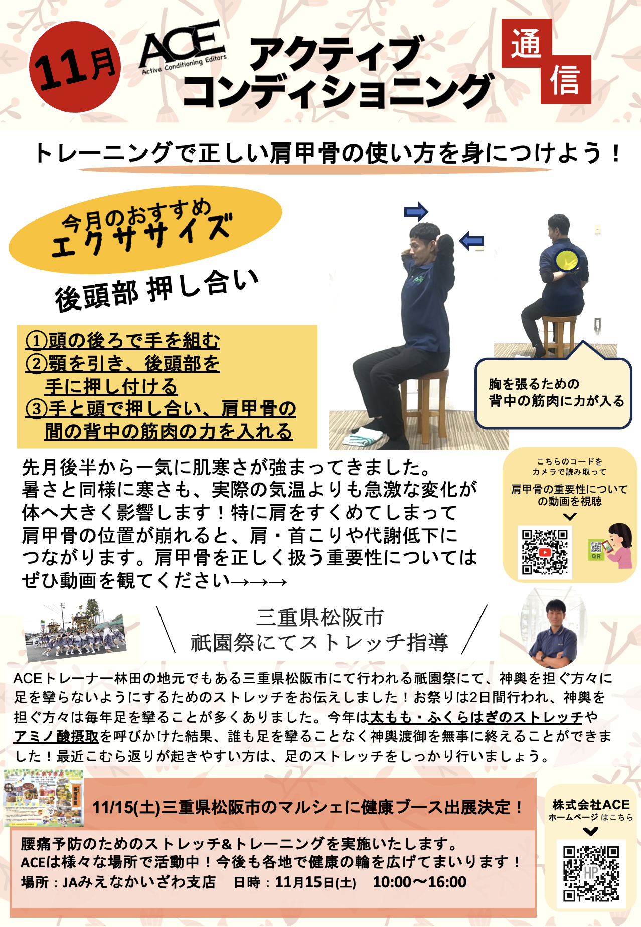 11月号は、トレーニングで正しい肩甲骨の使い方を身につけよう!