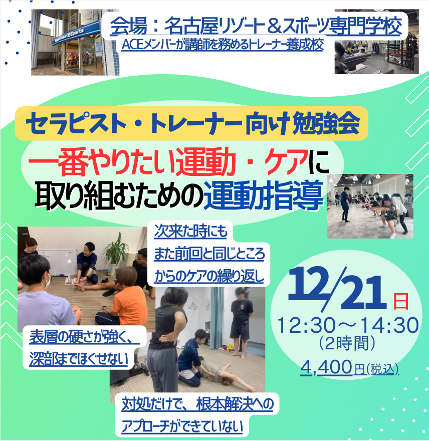 【 12/21指導者向け勉強会 】一番やりたい運動・ケアに取り組むための運動指導〜その場のケアを繰り返すスパイラルから抜け出して価値を高める〜