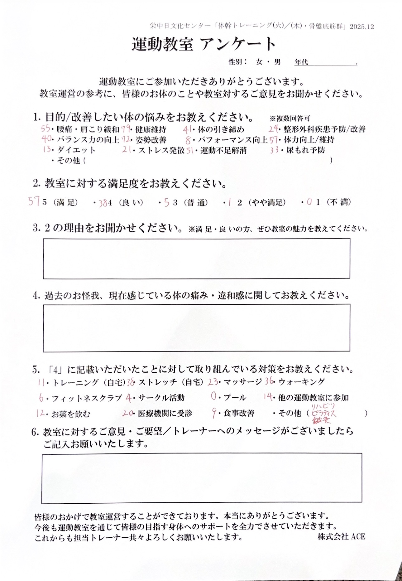 ・レッスン後は身体がスッキリして次の日は姿勢を保てている気がします。