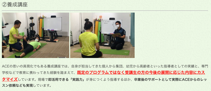 ACEでは、運動指導者を目指す方・指導者としてスキルアップを
