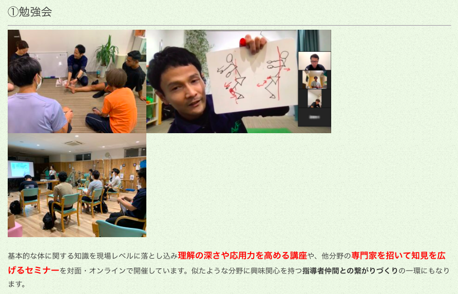 目指す方々に向けてトレーナー養成講座や月1回のトレーナー勉強会を